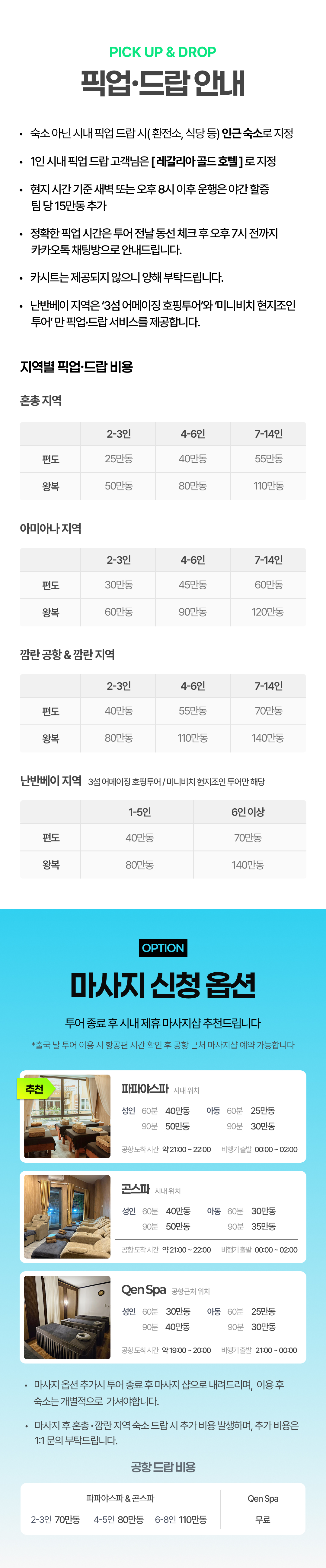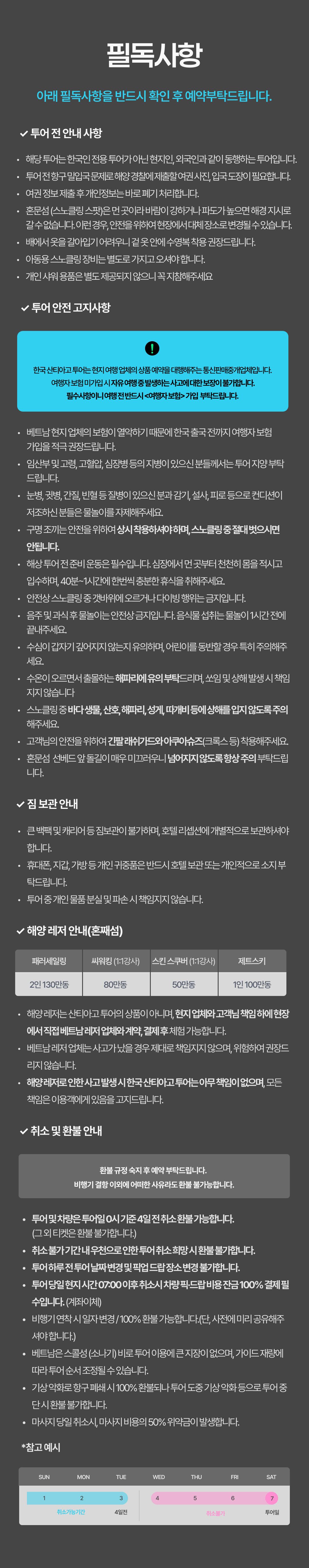 투어 시작 후: 안내드린 추가 비용을 현지에서 지불하신 후, 안전하고 즐거운 여행을 즐기세요 😊 (현지 잔금은 투어 당일 가이드님에게 동 또는 달러로 지불해주시면 됩니다.)