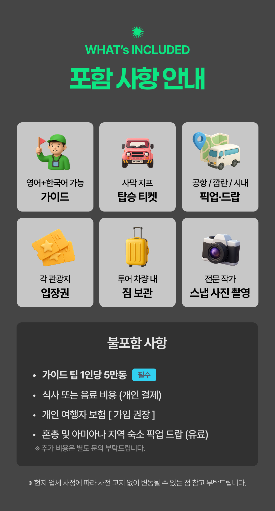 ✅ 포함, 불포함 사항