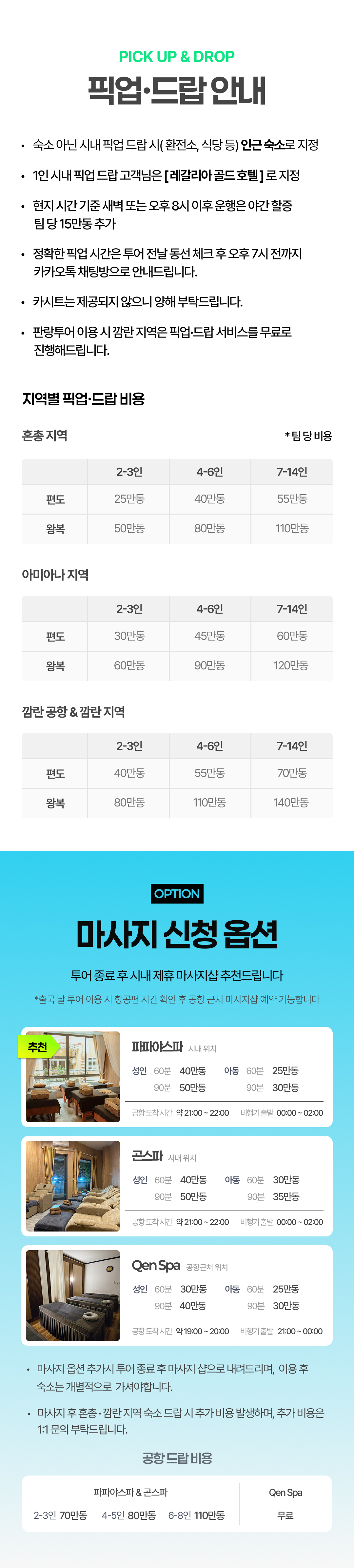 공항, 깜란, 시내 숙소 무료 픽업 드랍